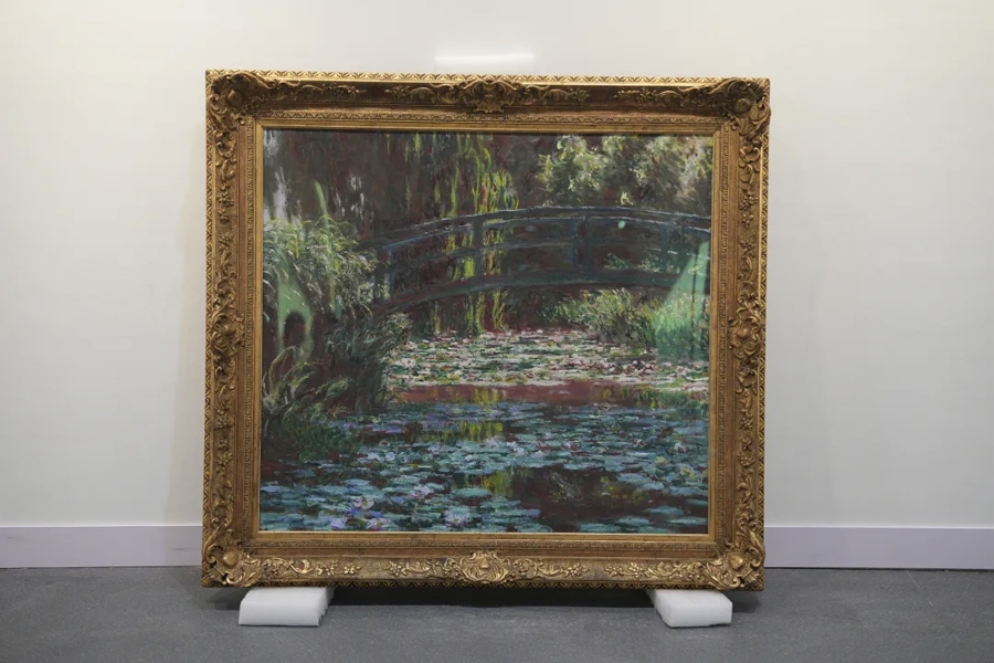 有桥梁的一幅名叫《睡莲池》,由莫奈创作于1900年;另一幅叫《睡莲》,创作于1906年。“两幅作品都是在他生命最后的二十多年里完成的,这个系列也是他生命和职业生涯接近尾声时,真正关注并投入创作的。”芝加哥艺术博物馆借展团队主任Tim Campos介绍,展览中的两幅亦有风格上的代表性。
